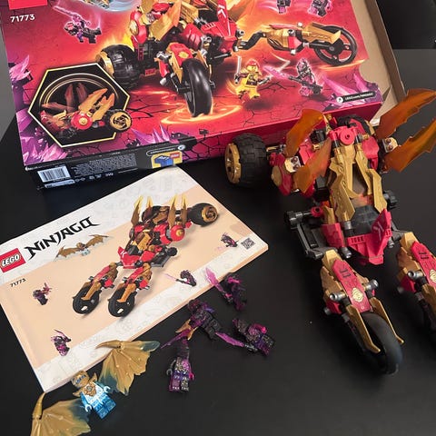 Bygget sammen én gang og stått utstilt siden LEGO NINJAGO Movie LEGO byggesett som inkluderer en dragefigur. Settet består av flere deler som kan settes sammen for å lage en detaljert modell fra NINJAGO-serien.