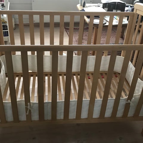 Selger 1 stk 120x60 sprinkelseng fra IKEA. Det er to skuffer i bunnen. Vi kjøpte senga brukt av venner til vår sønn, og kjøpte da ny madrass som har to forskjellige sider og mer "tekstur" i madrassen enn bare skumgummi.