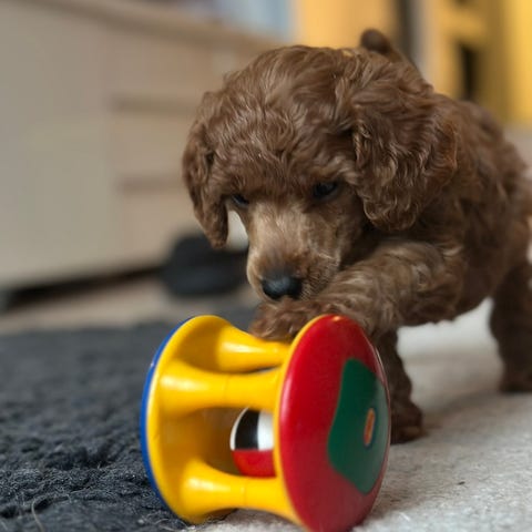 Denne gutten er 2,9 kilo på vekt og 25cm høydemånke. Han skal være stor toy eller liten dverg puddel som er veldig fin og leken. Han har en nydelig og intens rød farge.