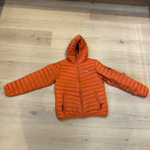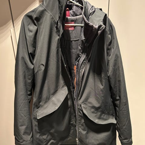 Allværsjakke med avtagbart for i form av en tynn dunjakke. Kun brukt et par gangen i kort tid, ingen bruksmerker.