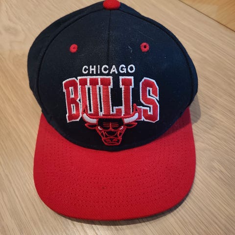Chicago Bulls caps i ekte skinn. Justerbar og produsert i USA. Brukt, men i god stand med normale bruksspor. Klassisk Bulls-design med brodert logo. Selges da den ikke blir brukt.