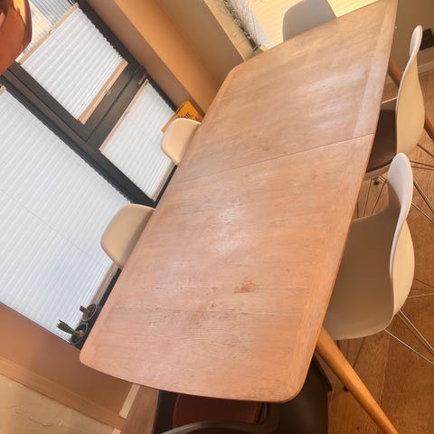 Flekk på bordplaten som burde kunne pusses bort.