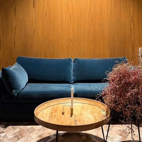 Dessverre er den nederste delen løsnet i forbindelse med flytting av sofa av stylistene gjennom salgsprosessen av bolig. Den løse delen er stabil da den er heftet til et stoff under sitte putene. Dette har ikke noe å si for bruken eller utseende.