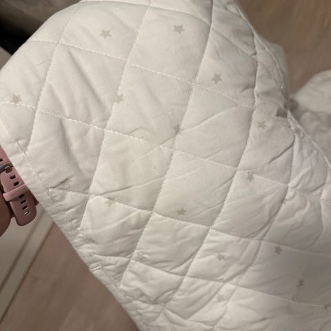 Vi har bare åpnet og prøvd den på før vi fort la merke til at vi hadde kjøpt feil størrelse. Denne passer altså ikke til sprinkelseng, bare til krybbe/bedside seng :-)