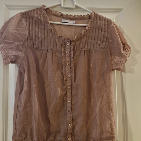Dette er en beige off the shoulder genser som er fra H&M. Denne genseren har ett lite hull under armene.