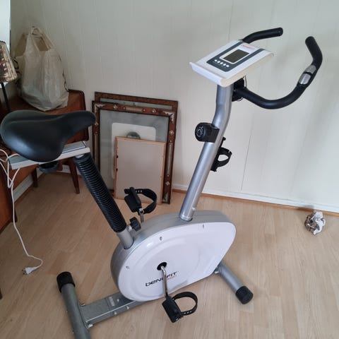 Feilkjøp på nett. Sykkelen passar best for lave personar (opp mot 165cm) og har veldig lav motstand, så derfor ønsker eg å prøve å selge den. Lett sykkel som kan plasseres ute av vegen og demonterast enkelt. Grei å sitte på. 1,5kg svinghjul. Kan leveres lokalt, eller hentast.