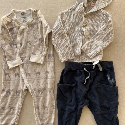 Lue fra huttelihutt, ullfleece dress fra hust andre claire og ull bodyer og stillongs fra bl.a reflex. Den ene stilongsen har fått ett hull desverre.