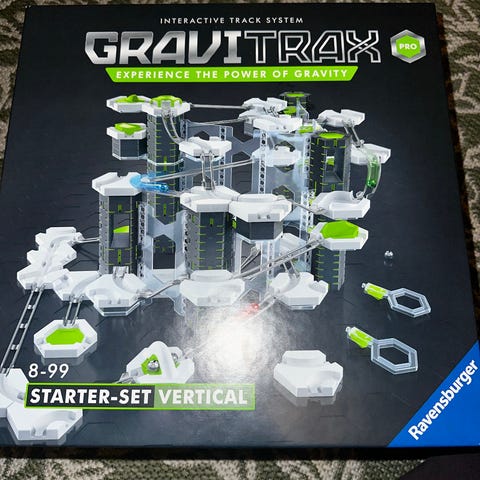 Ravensburger GraviTrax Starter-Set barnespill. Interaktivt sporbyggingsspill som bruker gravitasjon for å bevege kuler gjennom ulike baner. Passer for barn fra 8 år og oppover.