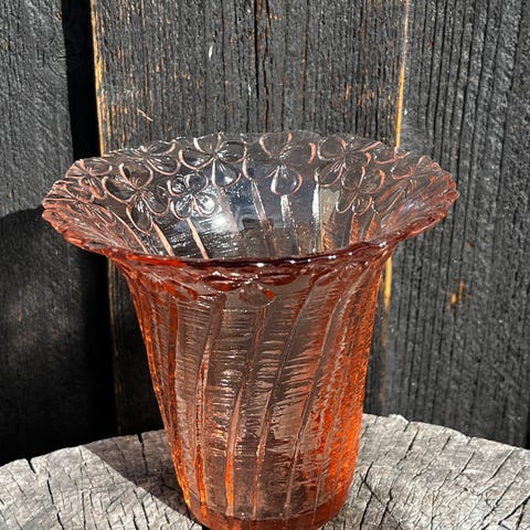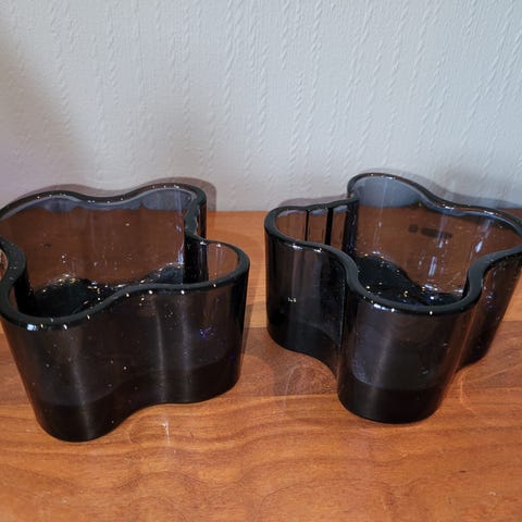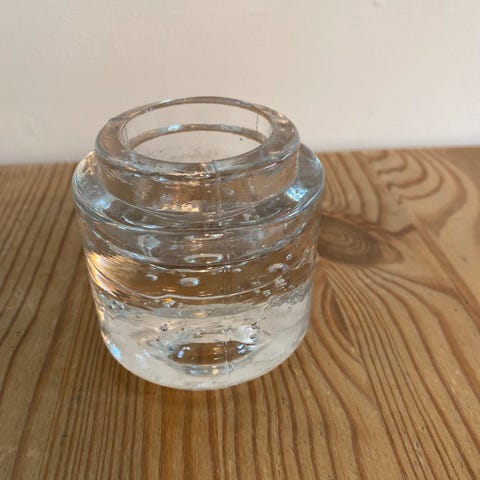 Nydelig vase i glass. 16 cm bred og 12 cm høy. I topp stand. Har vært et littala klistermerke på den tidligere men det har sluppet taket.