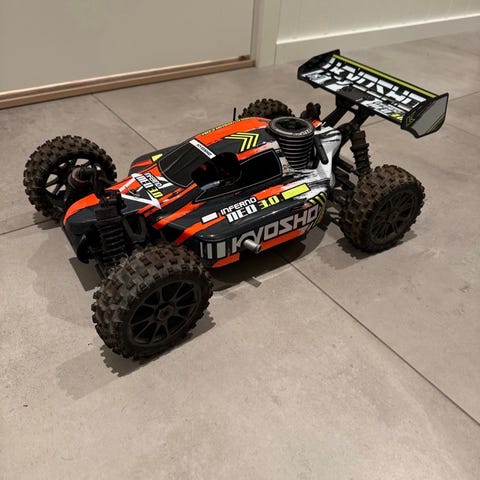 Minimalt brukt Kyosho DF-300. Dette er Nitro versjon komplett med servoer. Jeg husker ikke om jeg lot mottakeren stå i, i så fall er det en bonus. Hvis ikke så trenger du mottaker.
