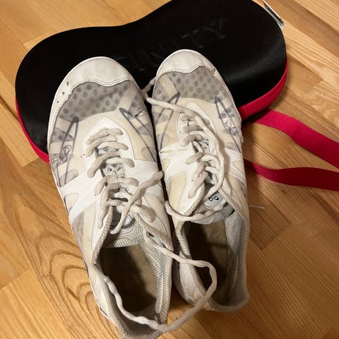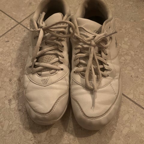 Selger min datters cheersko fra Varsity da hun måtte ha større størrelse etterhvert. Brukt 1,5 sesong. Pent brukt, men noe slitt enkelte steder under sålen (se bilde).