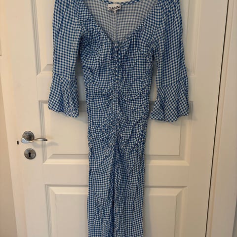 Lang kjole fra Ganni str. M, kort kjole str. S (lengre foran for å dekke magen) og omslagsvest, str. S.