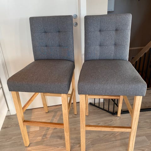 Pent brukt barstol i natur. Solid og god å sitte på.