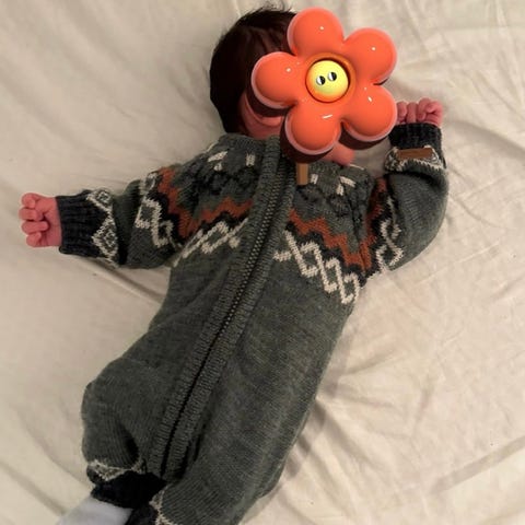 Bilde 2: Hjemmestrikka ulldress i størrelse 0-4mnd. 200kr