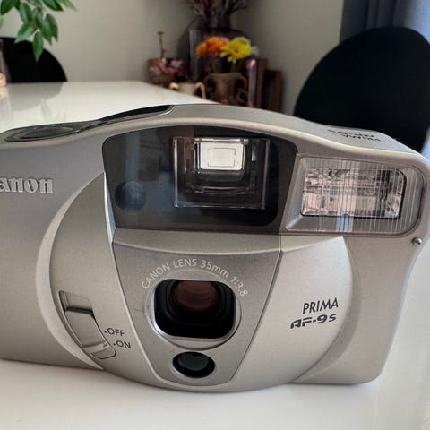 Selger et flott Canon Autoboy Zoom Super (også kjent som Canon Sure Shot Zoom XL og Canon Prima Zoom F), et kraftig og robust analogt filmkamera fra sent 1980-tallet i ekstremt god stand. Kameraet bruker vanlig 35mm film og er kjent for sin kvalitetslinse og brukervennlighet. Det er derfor et supert kamera for folk som prøve seg på filmfotografi eller oppgradere fra engangskameraer.