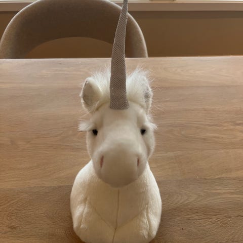 Selger en nydelig enhjørning til vegg i myk plysj. Perfekt som dekor på barnerom eller lekerom 🦄