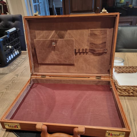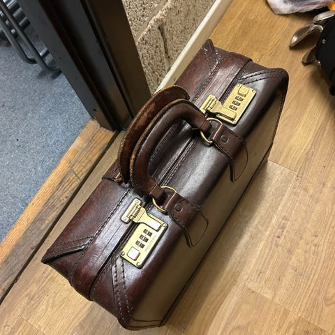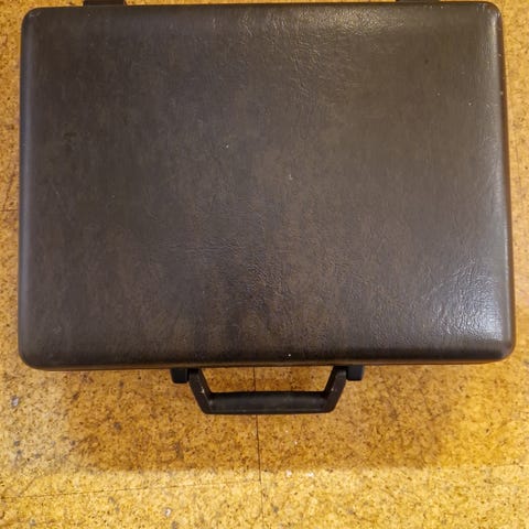 Franzen klassisk stresskoffert i sort lær med kodelås. Pen og lite brukt.