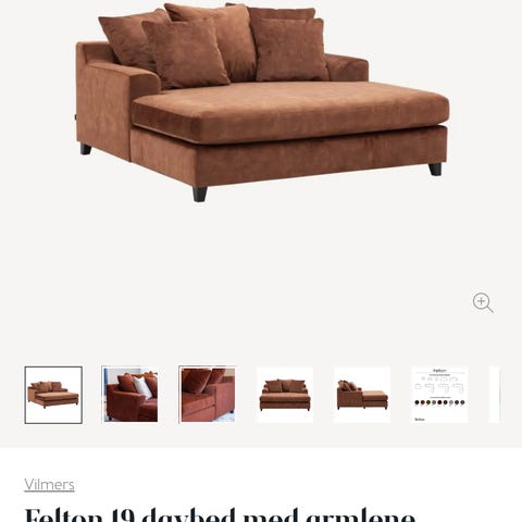 Boston Daybed fra Skeidar i velour - Fuji Copper med sorte ben og løse puter.