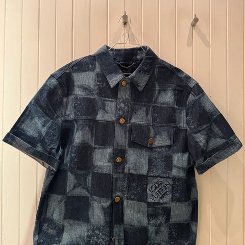 Louis Vuitton XL Bomull Herreskjorte i hvit farge med svart mønster. Laget av bomullsmateriale. den begynner og bli sjelden og har sett den ligge ute på therealreal til 22000 i ny tilstand 😊 min er aldri vasket. jeg betaler rensen. passer L/XL