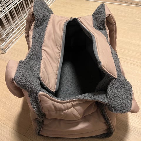 Trixie Junior Bæreveske er laget av polyester og bomull og har en lysegrå utside og en mintgrønn innside!