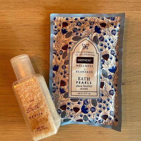 Badebomber, såpestykke og badesalt fra ulike merker.