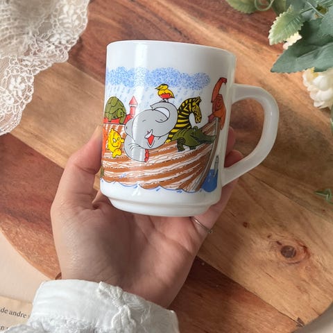 Selger en pen, eldre barnekopp laget av franske Arcopal. Ingen skader og lite bruksmerker. Se bilder.