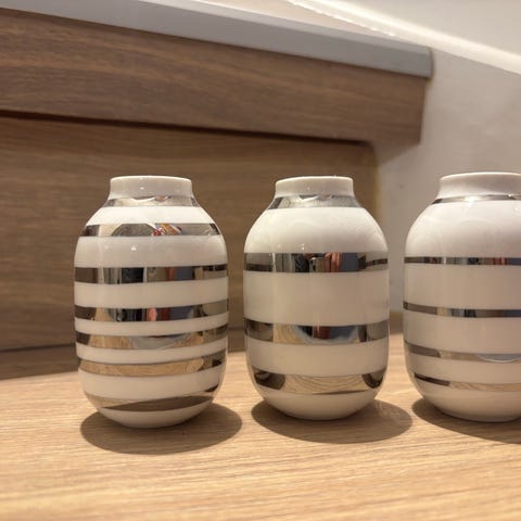 Kähler vaser og lysestaker sett hvit med sølvstriper