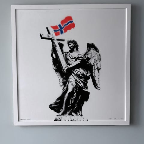Relevante søkeord ift. annonsen og kunstverket: sjablong, stencil, gatekunst, street art, angel, cartoon, politisk kunst, norsk kunstner, nostalgi, graffiti, samfunnskritikk, fine art print, urban art, urban kunst, pop culture, popkultur, dga, martin whatson, innrammet kunst, retro, vintage, spraymaling, dot dot dot, political art, joy, pøbel, popkultur, print, trykk, samtidskunst, figurativ kunst, gatemotiv, motiv kunst, artwork, stensil kunst, kunsttrykk, fine art, dolk, gatemotiv, fake, artwork, minimalistisk kunst, interiør, pynt, design, unikt bilde, poster, mixed media, wall art, contemporary art, kunst til salgs