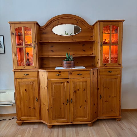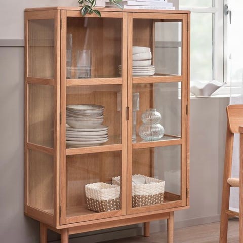 Glassvinduer og 4 hyller. Skuff nederst.