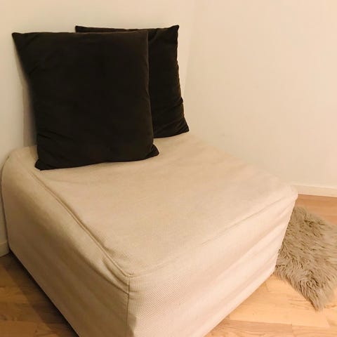 Genial puff med innebygd seng 75-200. Denne er super om du har litt mindre plass, men ønsker/har behov for en gjesteseng. Koster i overkant av 9000kr ny og er veldig lite og pent brukt. Boconcept