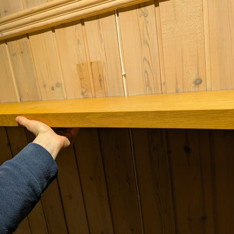 Veggfestene har noen malingsflekker som ikke synes når hylla er montert. Kan sikkert også fjernes med middel om