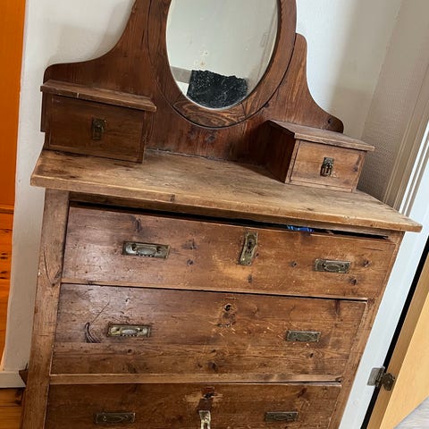 Vintage sidebord i tre med skuffe og hylle