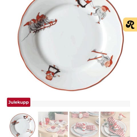 Tallerkner og glass i Nisseservice fra Porsgrunn Porselen selges.