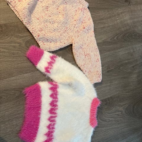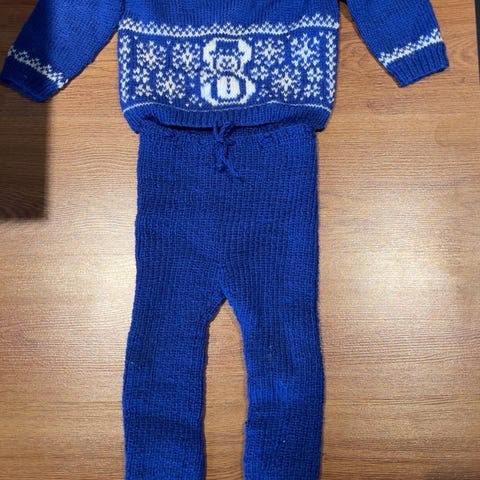 Hjemmestrikk. Pent brukt. Selges samlet. Tror det tilsvarer ca.1.5-2 år.