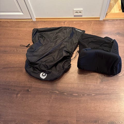 Tidligere eier har sprettet opp sømmen bak(se bildet). Har ingenting å si for bruken, mest sannsynlig pga. få selen til å passe. Ellers noen flekker, har ikke tørketrommel så har ikke blitt vasket av oss(se bilder).