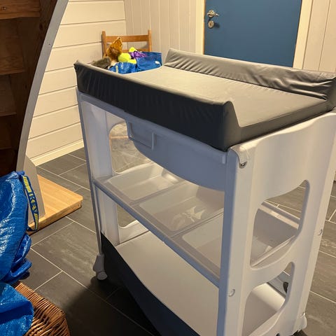 Nesten ubrukte beholdere og bleiebøtte fra ikea kan følge med om ønskelig.