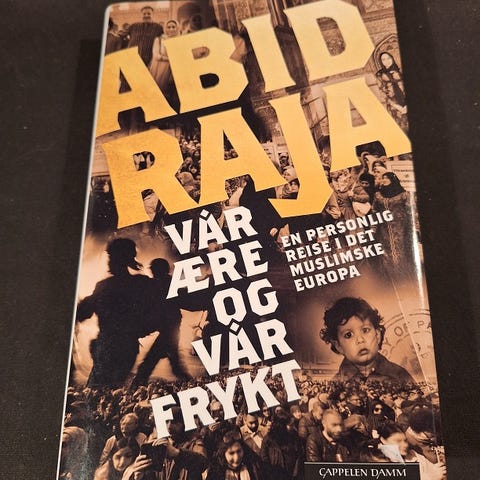 Abid Raja bok med tittelen Vår ære og vår frykt. Boken inneholder en personlig reise i det muslimske Europa.