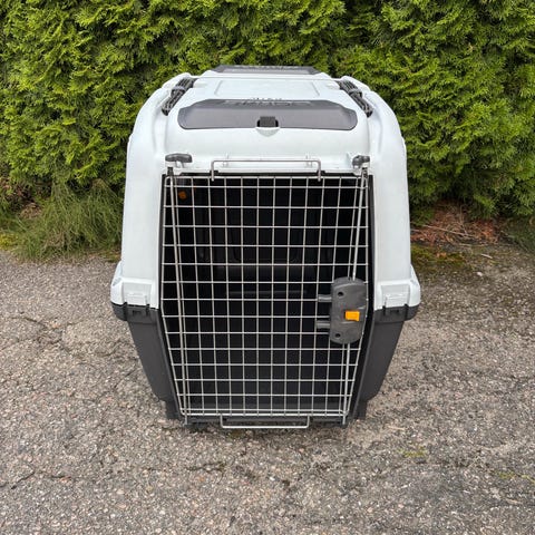 Selger et robust og sikkert Skudo 4 transportbur som er perfekt for både bilferie og flyreiser. Buret er kjent for sin gode kvalitet og sikkerhet. Hjul og drikkeskål inkludert.