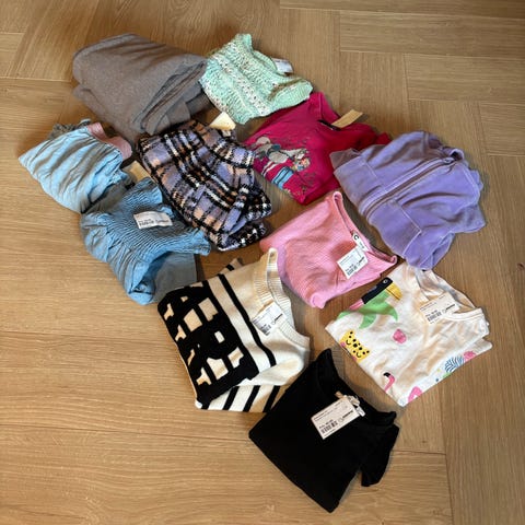 • 2 stk hettegenser med glidelås og lommer, disse er str 120 men små i størrelsen. Brukt to ganger