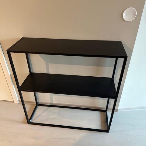Solid kvalitet: Robust understell i sortlakkert metall og hylle i herdet glass.