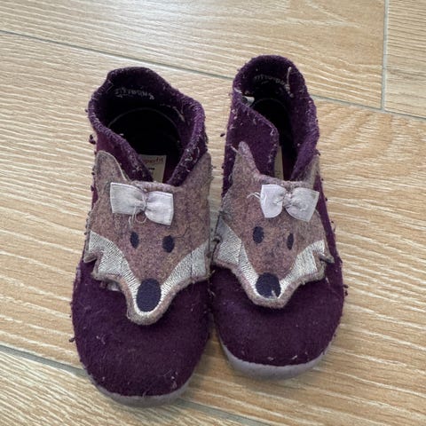 Gode tøfler i ull. Str. 24. Synlig brukt, men ikke slitt.