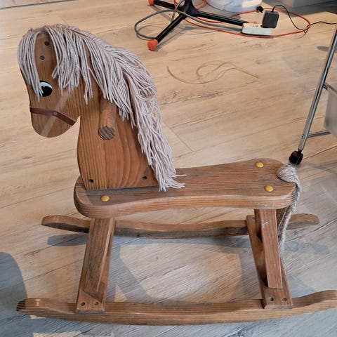 Veldig pent, svært lite brukt gyngehest selges. Den er som på bildet og god kvalitet. Kan hentes i Sandefjord. Kan også sendes- eller fiks ferdig