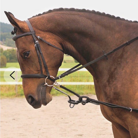 - Innspenningstøyler fra Horze. Str. full, men små i str. Måler 95 cm fra ende til ende når innstilt på ytterste hull. Ubrukte, 300,-