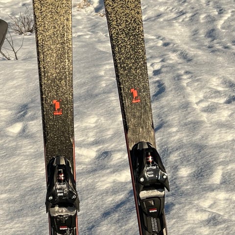 K2 Disoredely twintip ski med midtmonterte bindinger.