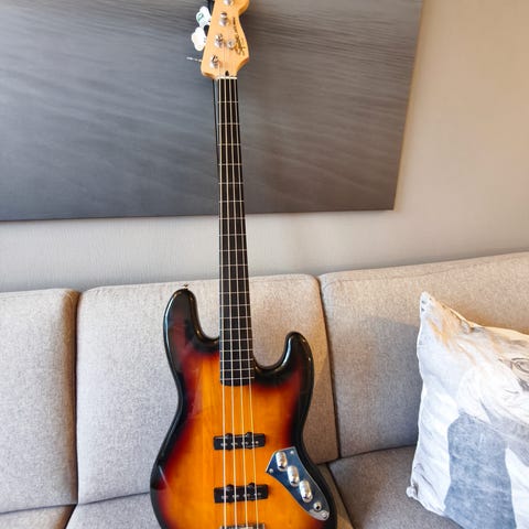 Selger min Squier classic vibe 60's jazz bass i sunburst farge med tungt hjerte. Kjøpte denne helt ny i august 2024 og har spilt på den litt, men ble aldri noe Joe dart - så nå kan noen andre få glede av den. Den er meget pent brukt, men har klart å ødelegge de 2 nederste knottene. Den nederste er chippet av på toppen og den i midten sitter løst. Begge fungerer helt fint - er kun estetisk. Det følger også med en bag fra 4sound som også kan bæres på ryggen. Strengene som sitter på den er de orginale som fulgte med bassen i sin tid, men bærer ingen preg av bruk / rust.