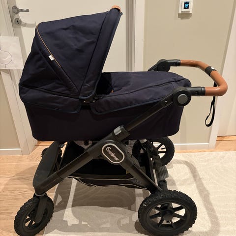 Selger en pent brukt vogn fra Easywalker. Kjøpt på barnas hus i Tromsø. Følger med liggedel og sittedel. Følger også med myggnett og vindtrekk.