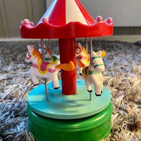 Lite brukt, for det meste stått til pynt. Vrir du på karusellen, spiller den musikk.