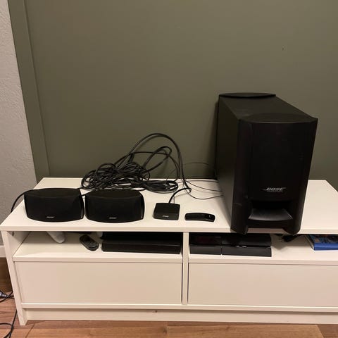 En fantastisk sett bose lydsystem føles med alle utstyret til montering på begge og kabelen.