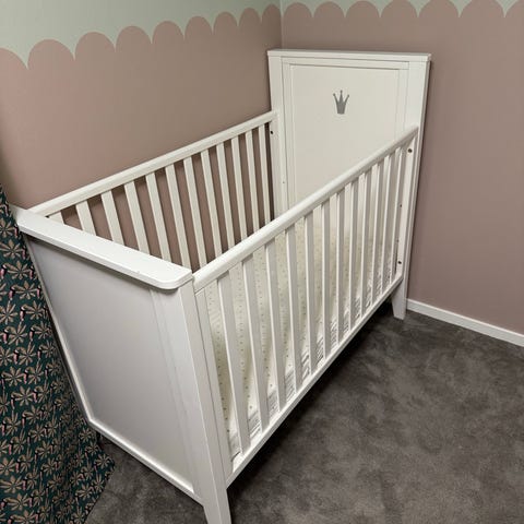 Troll Sprinkelseng barneseng i hvit farge. Sengen er designet for barn og har en klassisk sprinkelsengstruktur med spiler på alle sider. Passer til standard madrassmål og leveres med madrass som vist på bildene.