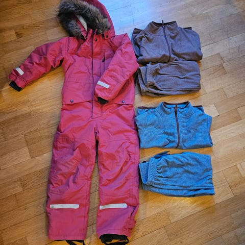Lite brukt vinterdress i størrelse 110. Kun brukt én måned før den ble for liten. Klart å få hull på den ene kneet som må lappes.
